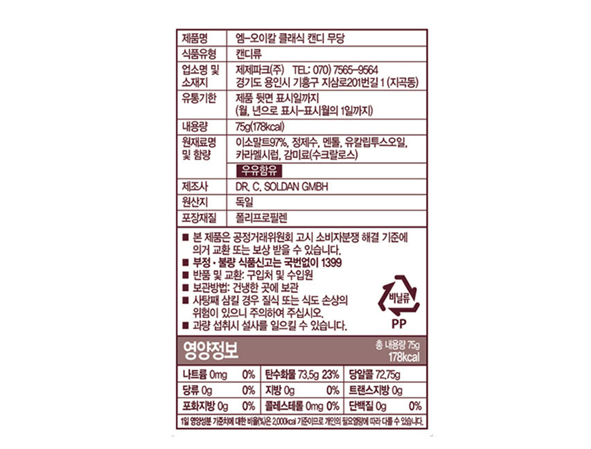 em-eukal 무가당 독일 엠오이칼캔디 클래식 75g 무설탕 목캔디 허브캔디