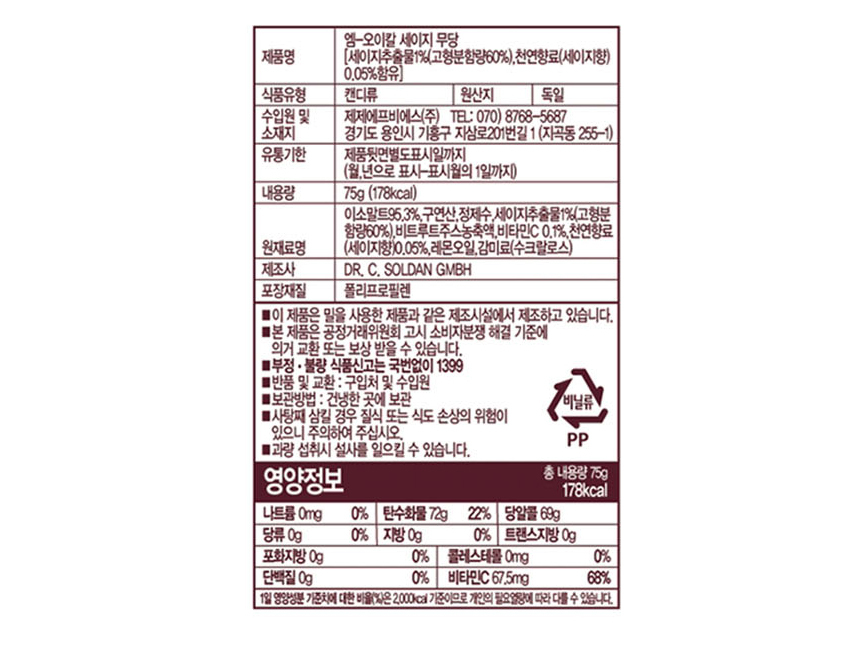 허브캔디 em-eukal 무가당 목캔디 세이지 75g 무설탕 목사탕 엠오이칼 캔디