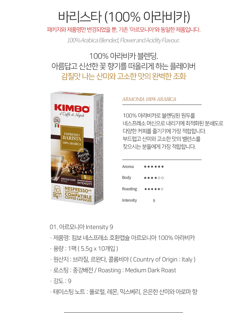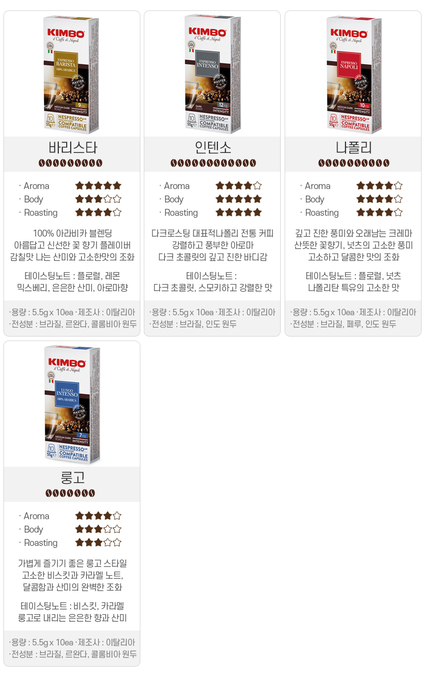 킴보 100% 아라비카 캡슐커피 10개입 x3개 바리스타 네스프레소 호환캡슐