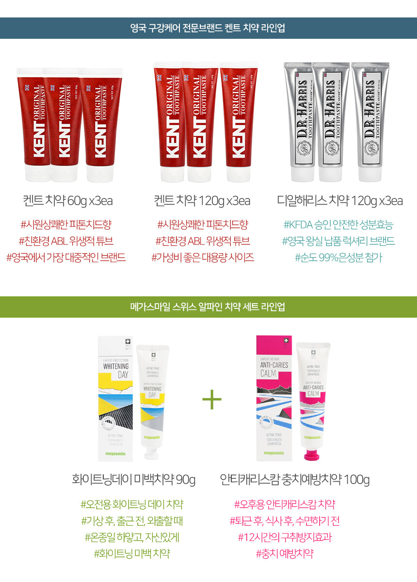영국 왕실 디알해리스X3개 잇몸관리 구취제거 상쾌한 시린이 충치 치석 제거 치약