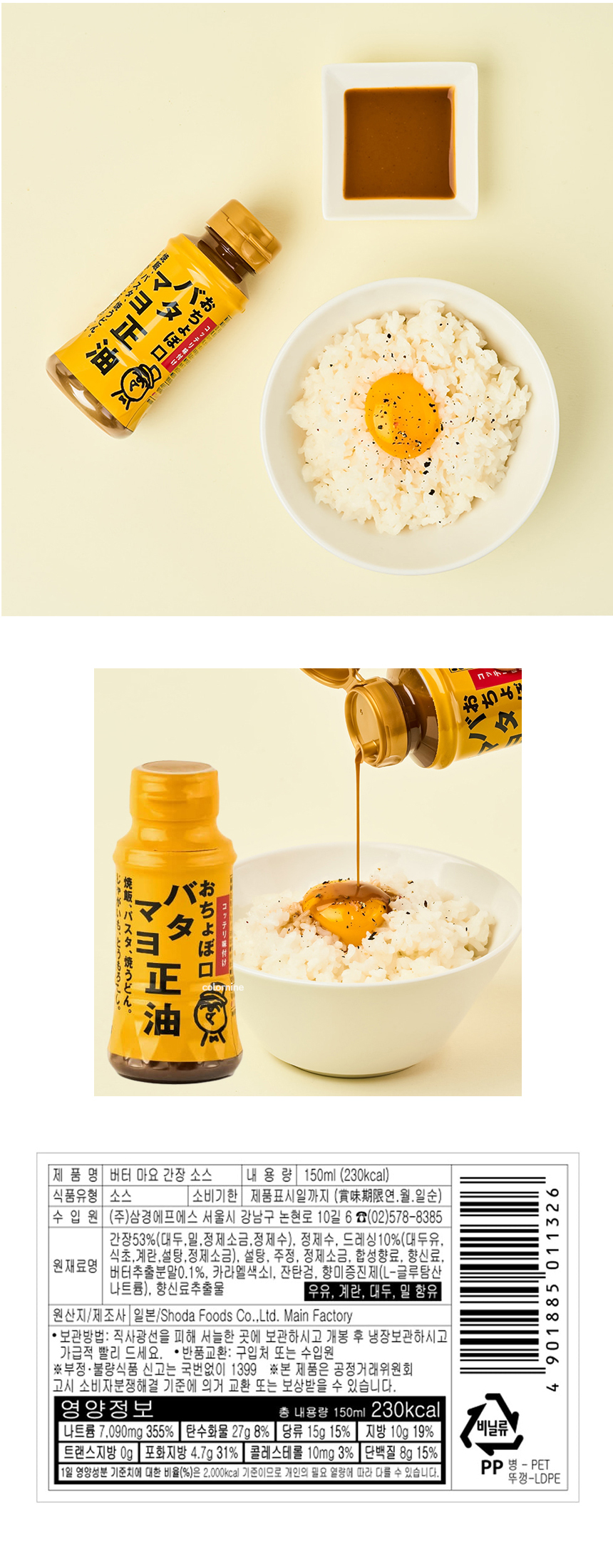 쇼다 버터마요 쇼유 150ml 볶음 비빔 파스타 만능간장