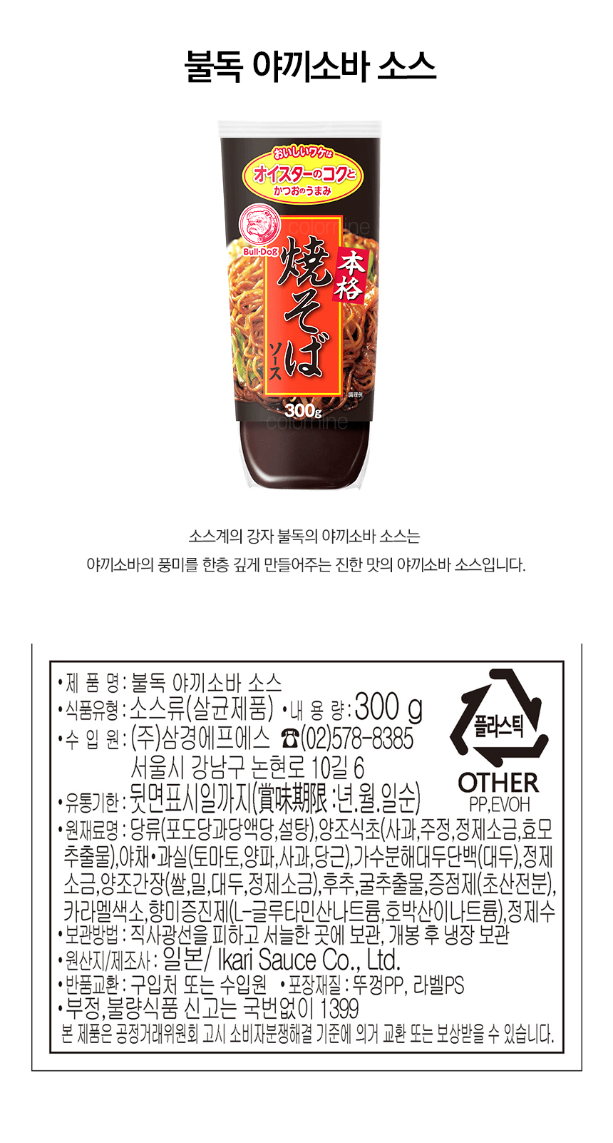 [불독] 오코노미야끼 야끼소바 데리야끼 돈까스 스테이크 우스타 드레싱 소스