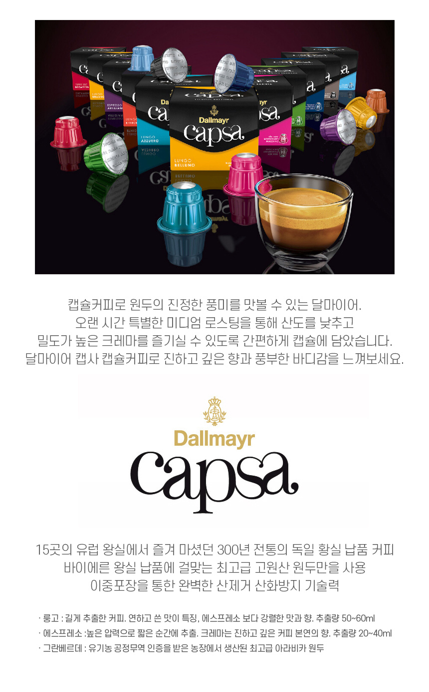 달마이어 네스프레소 호환 캡슐커피 룽고 에스프레소 디카페인 그란베르데 인텐소
