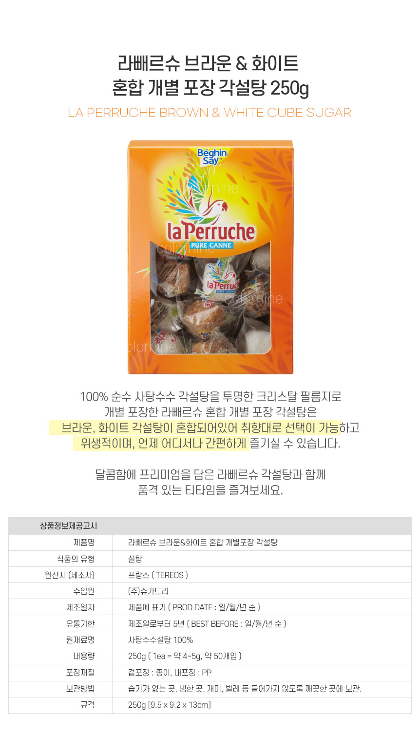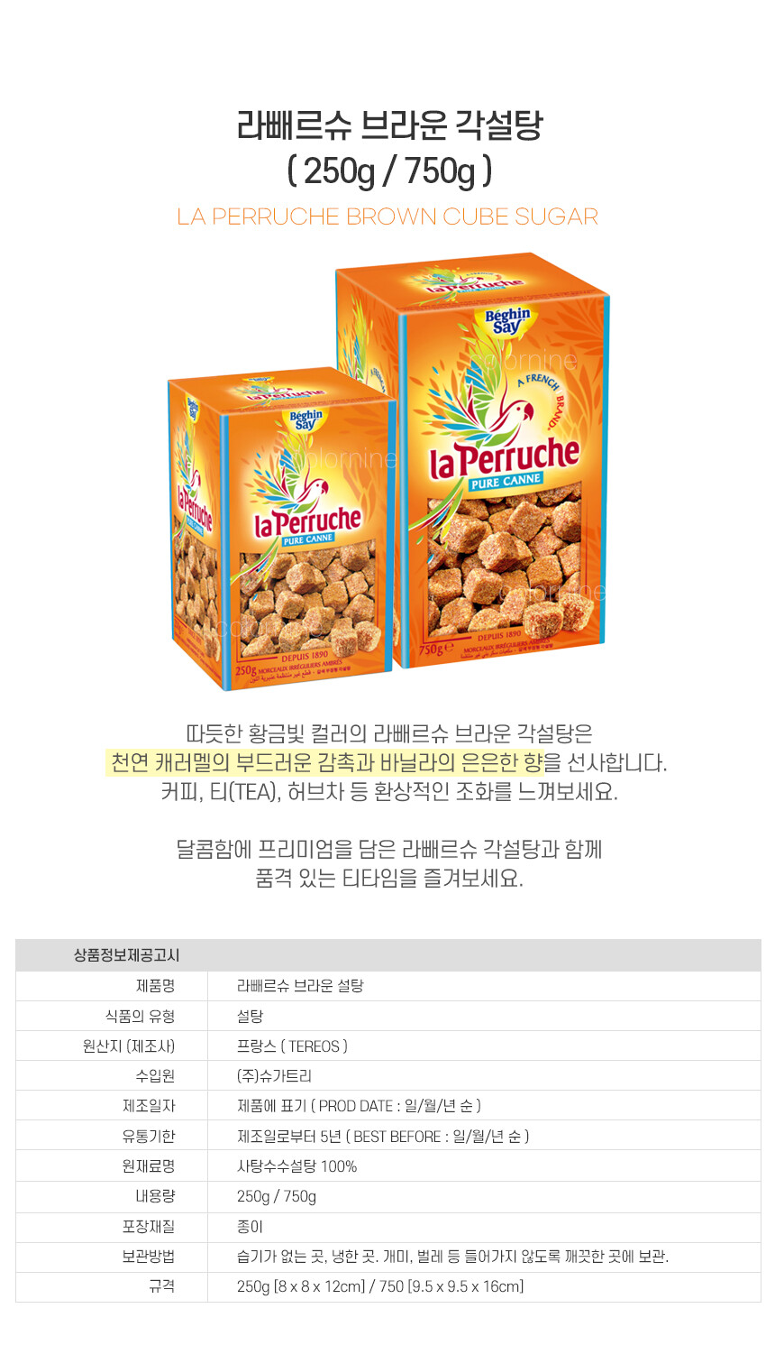브라운슈가 라빠르쉐 라빼르슈 앵무새설탕 각설탕 250g 프랑스 사탕수수 커피 차