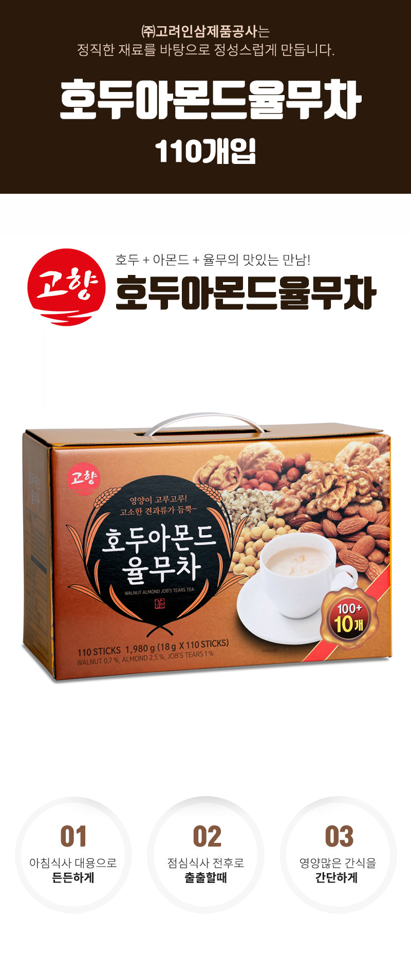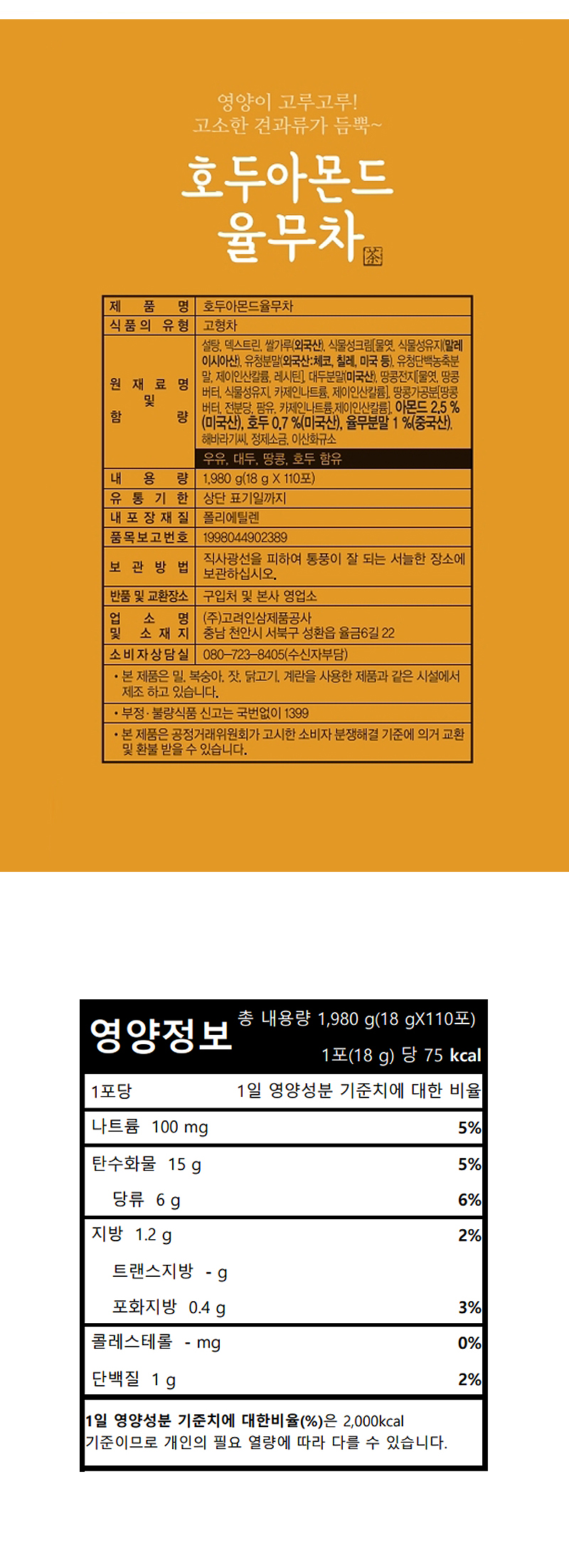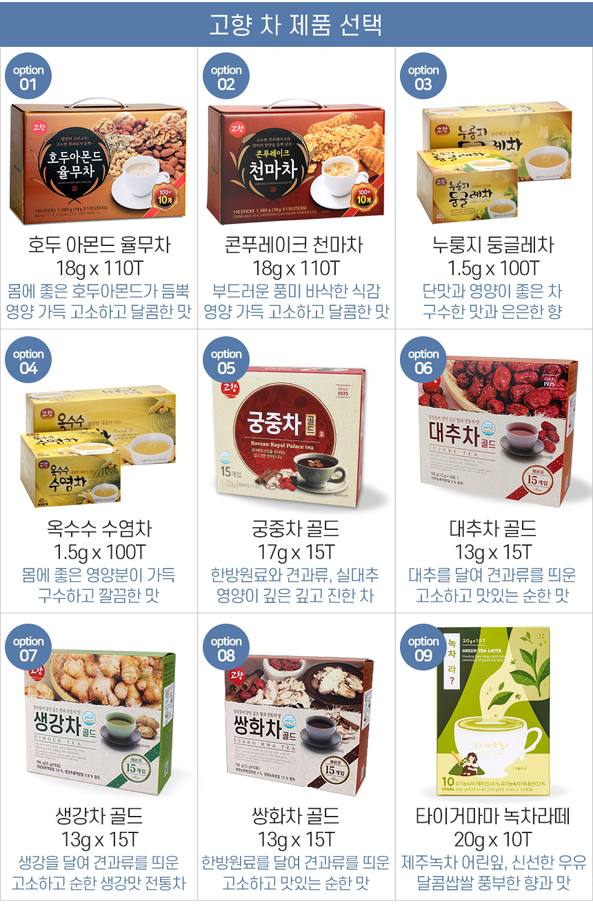 호두 아몬드 율무차 콘프레이크 천마차 쌍화차 고려인삼제품공사