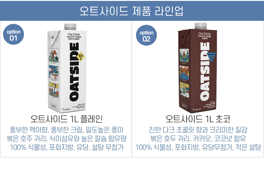 오트사이드 1L 바리스타 블렌드 초코 귀리 우유 오트밀크 식물성 비건 식이섬유