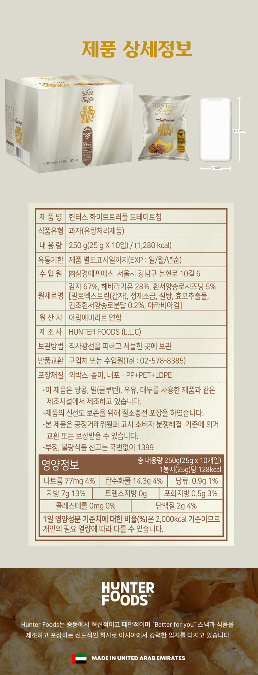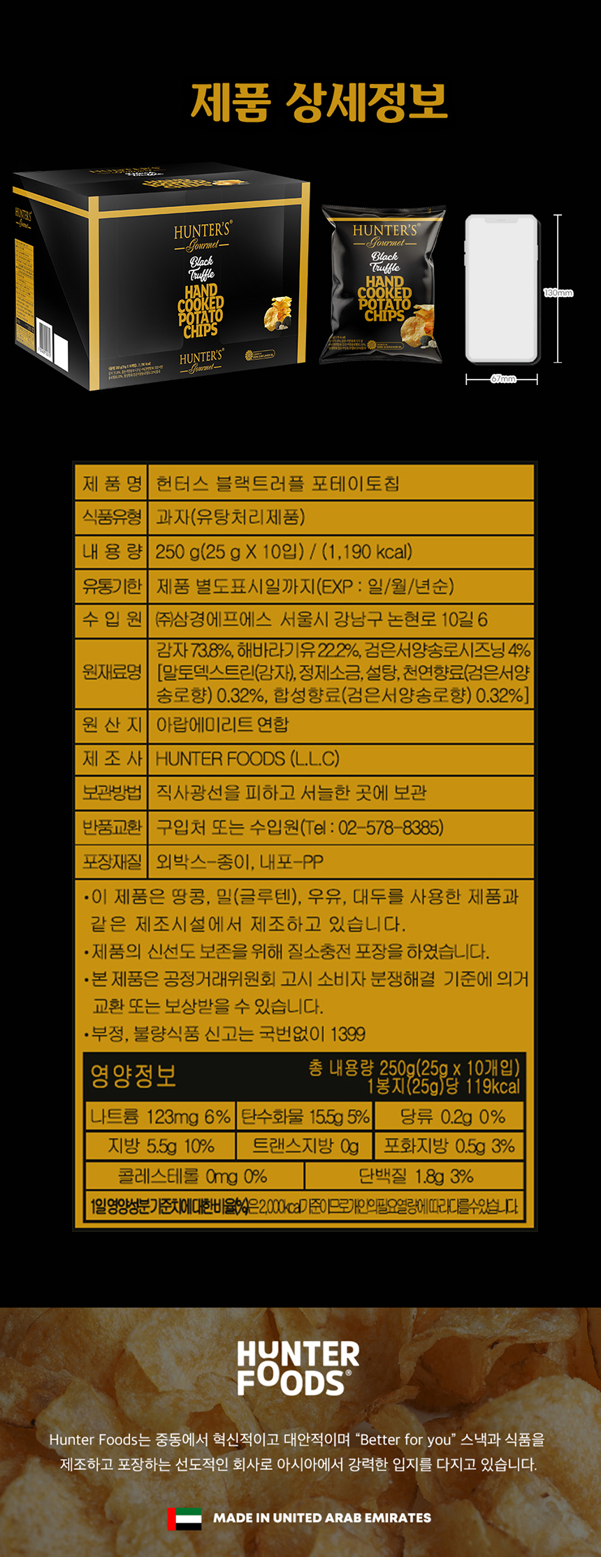 헌터스 트러플 감자칩 25g 블랙 화이트 / 포테이토칩 간식 안주 과자 스낵 수입