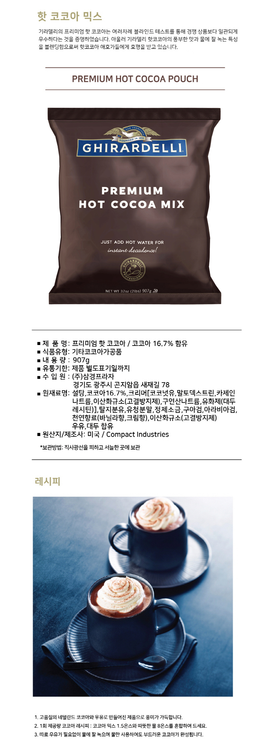 미국 초코파우더 907g x 2개 아이스초코 핫초코 기라델리 코코아