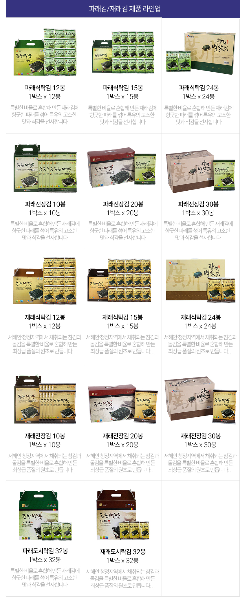 재래식탁김 12봉 밥반찬 맛있는식사 간편식사 선물용 광천별맛김
