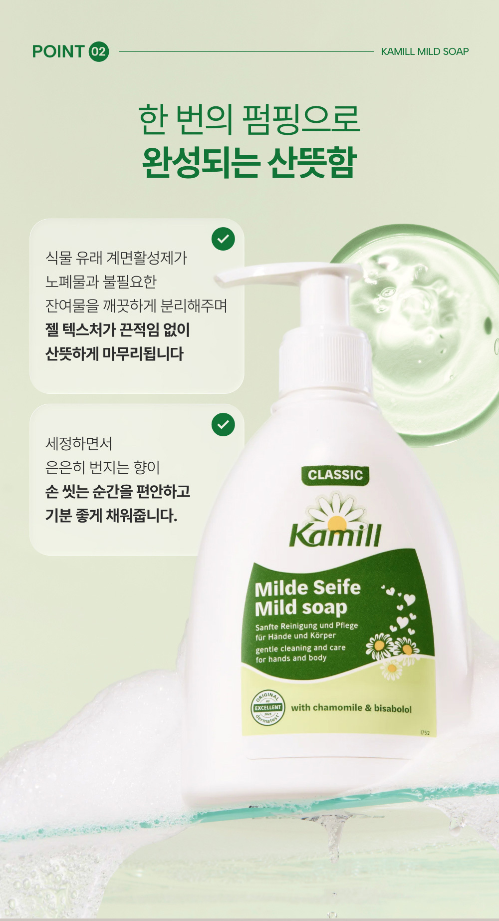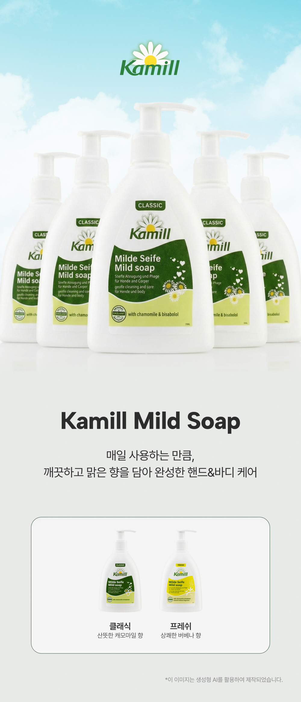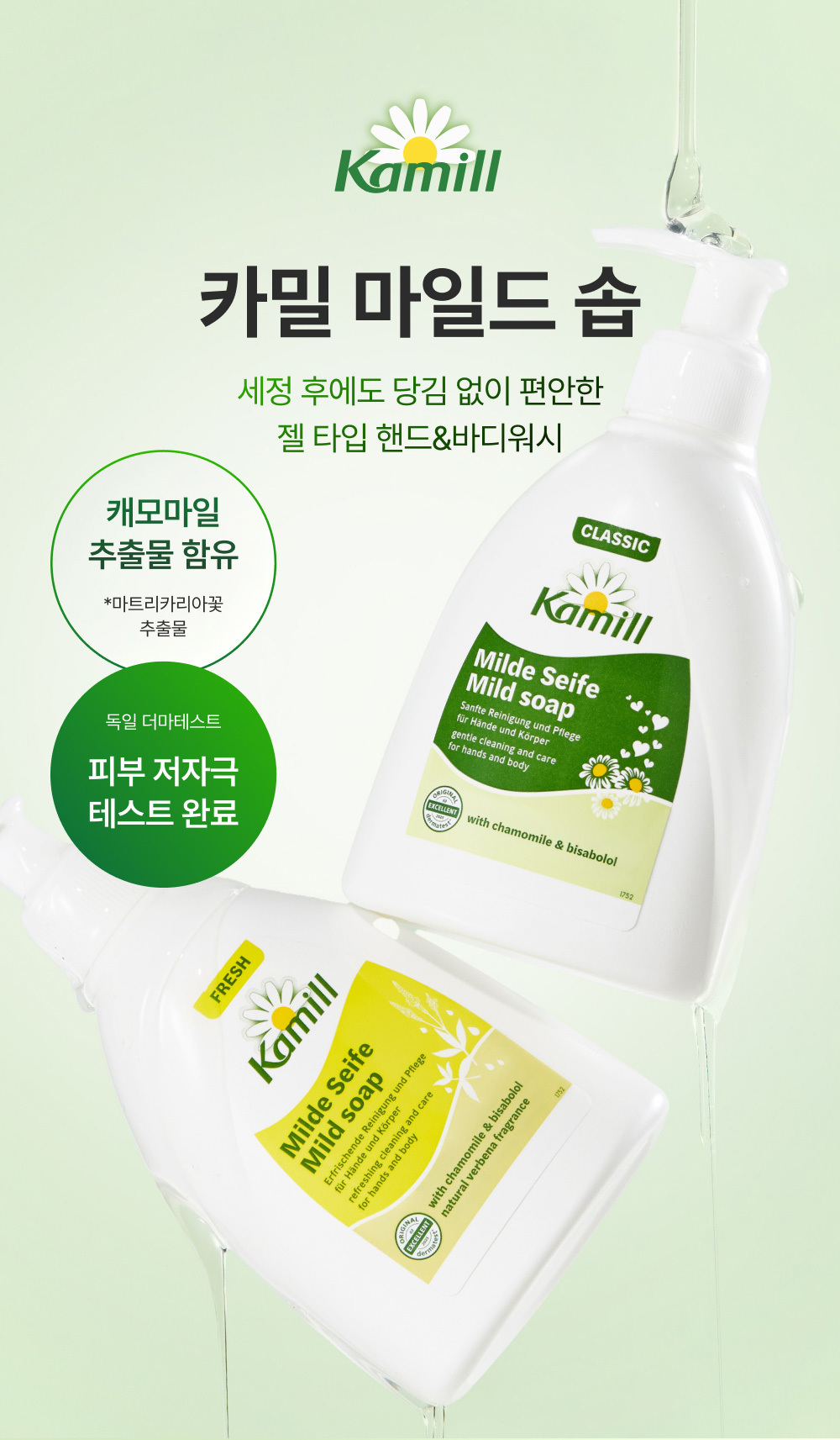 (1+1구성) Kamill 마일드솝 리퀴드 솝 프레쉬+클래식 300ml 카밀 펌프형 핸드워시 향기 보습