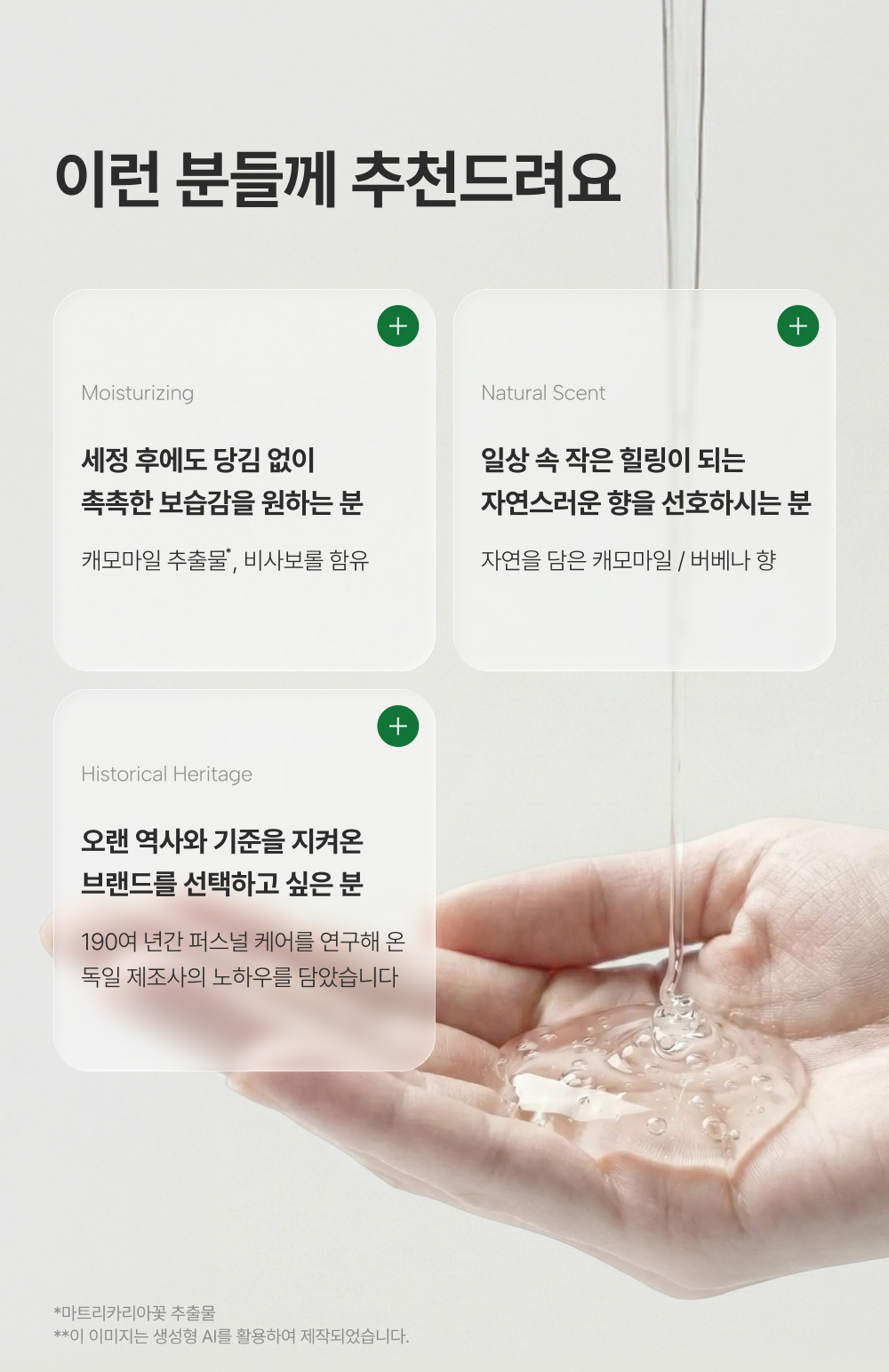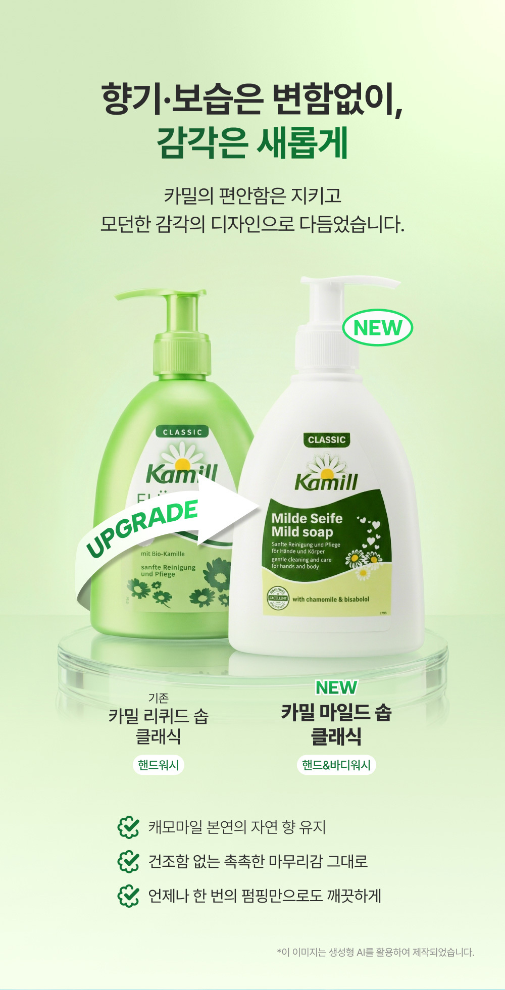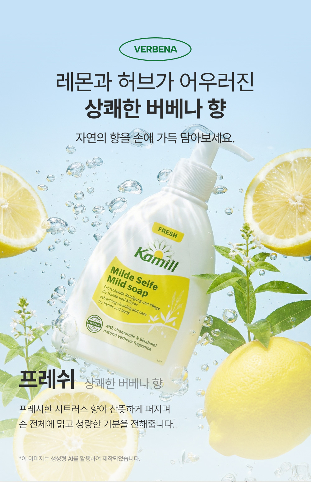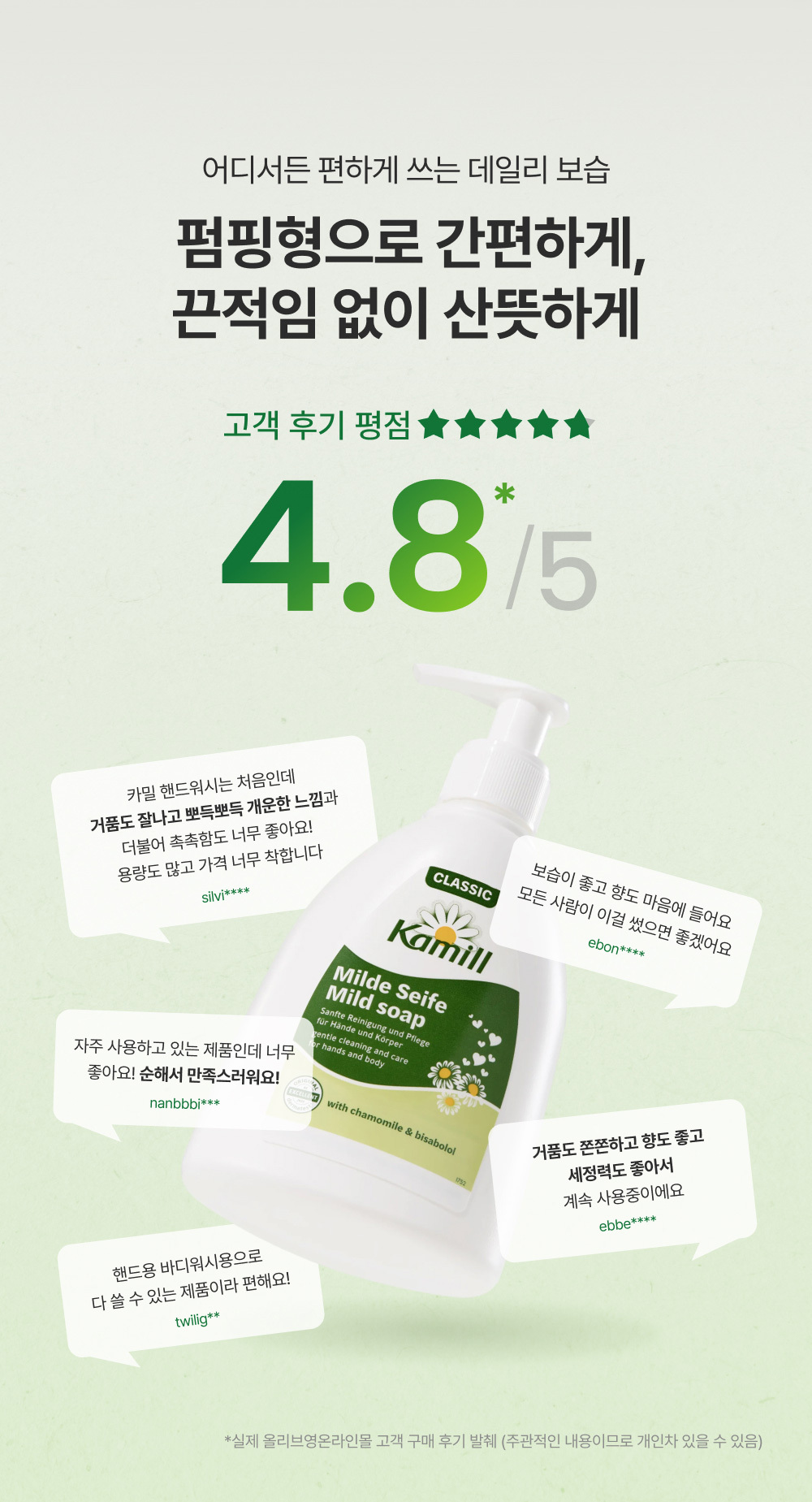 (1+1구성) Kamill 마일드솝 리퀴드 솝 프레쉬+클래식 300ml 카밀 펌프형 핸드워시 향기 보습
