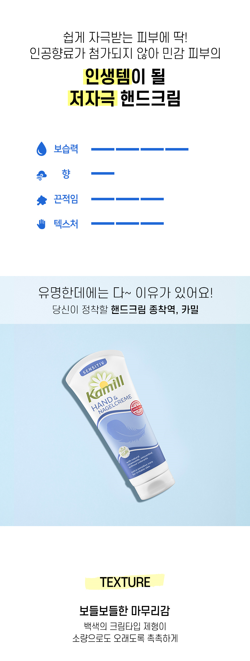 핸드 앤 네일 크림 센시티브 100ml 카밀 핸드크림 핸드로션 보습 촉촉 독일 Kamill