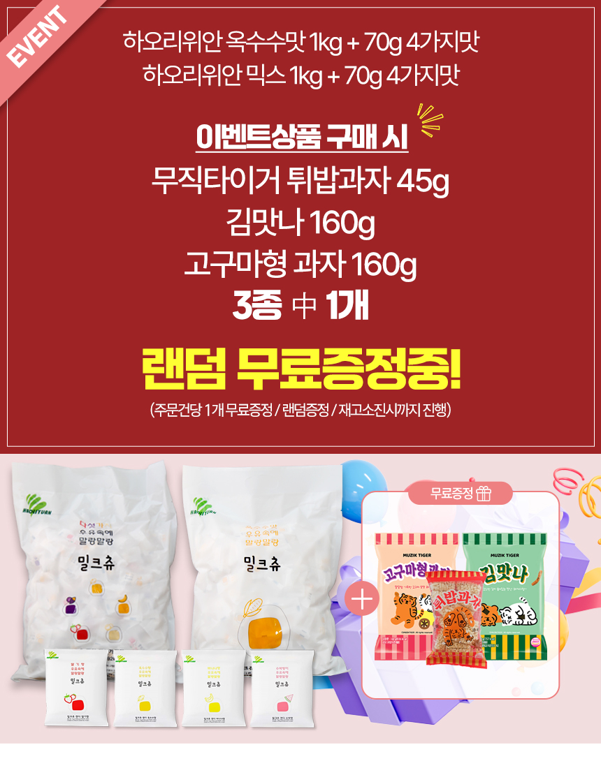 짐승용량 밀크츄 하오리위안 5가지맛 믹스 1kg+70g 4가지 맛 전통스낵랜덤드림