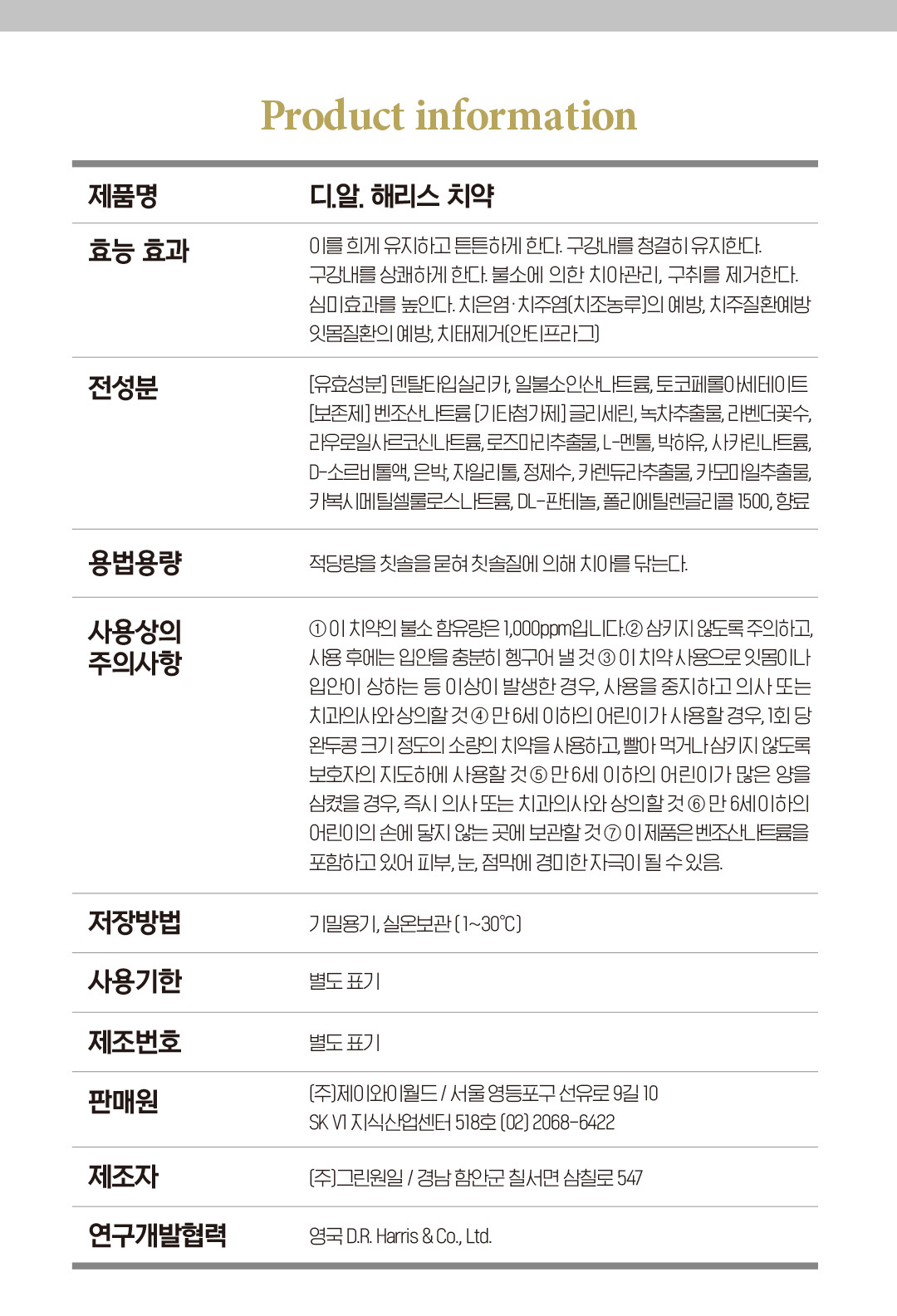 은성분함유 디알해리스 충치예방 구취 치약 120g 3개+60g 1개