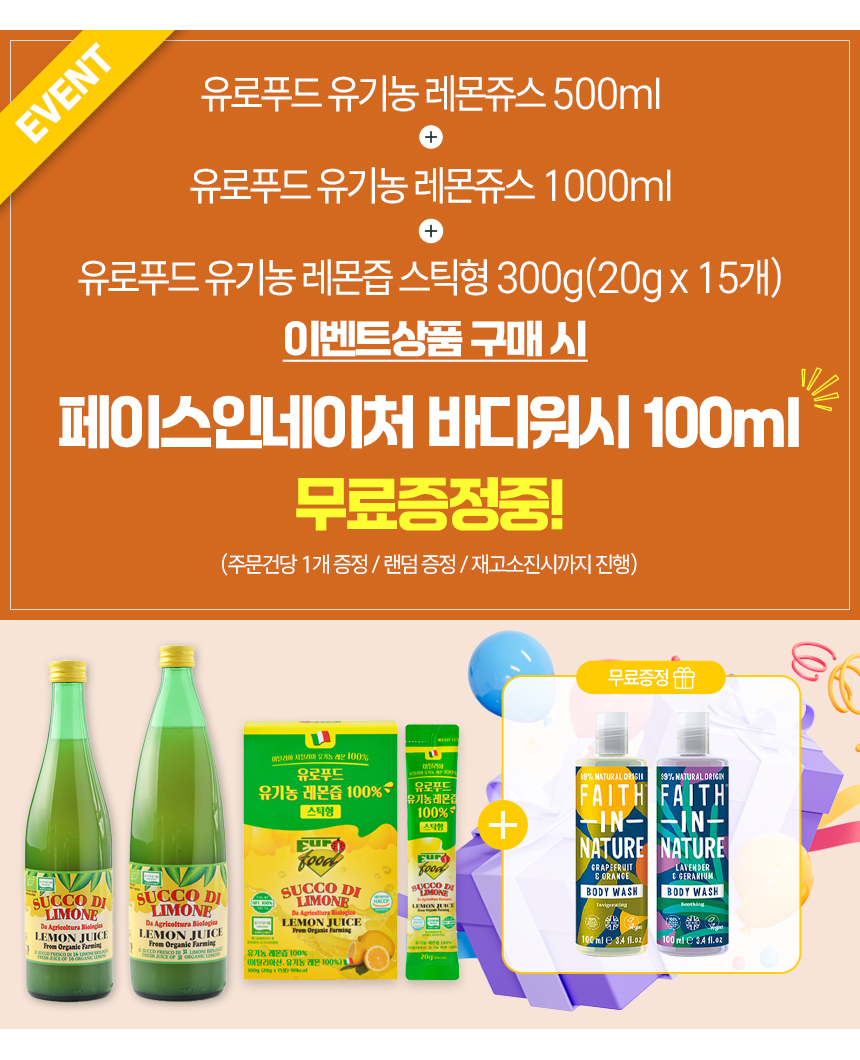 유로푸드 착즙주스 레몬즙 100% 레몬쥬스 500ml 1개+1000ml 1개+스틱형1통 (바디워시드림)