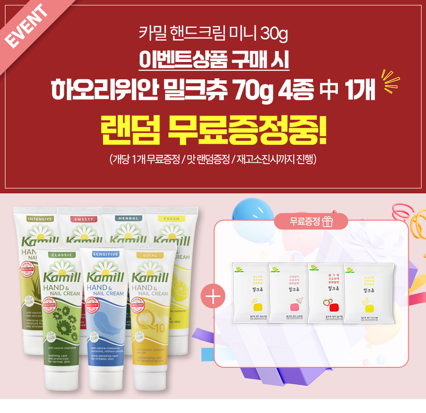 (사계절 필수템)카밀 핸드크림 미니 클래식 30ml 휴대용 데일리+밀크츄 미니 70g 1개