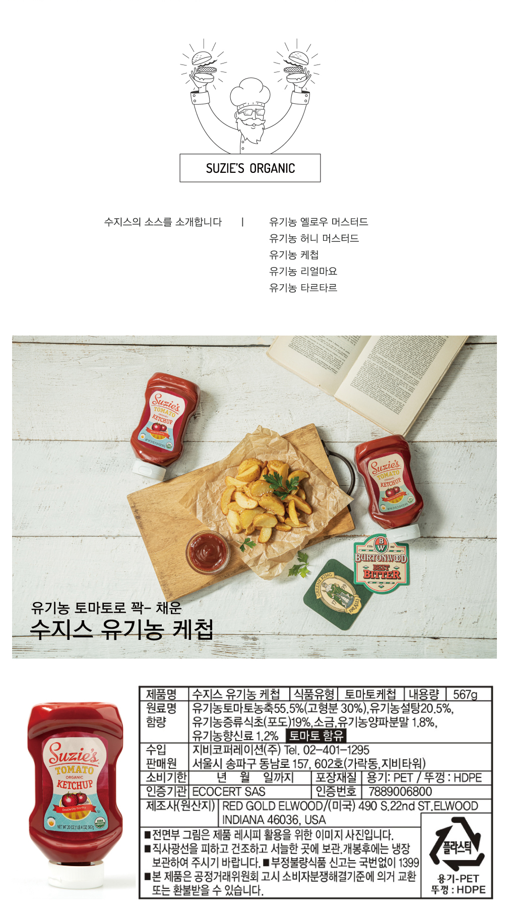 요리소스 저칼로리 오므라이스 비건 유기농 케첩 567g 수지스 토마토 케찹 어린이