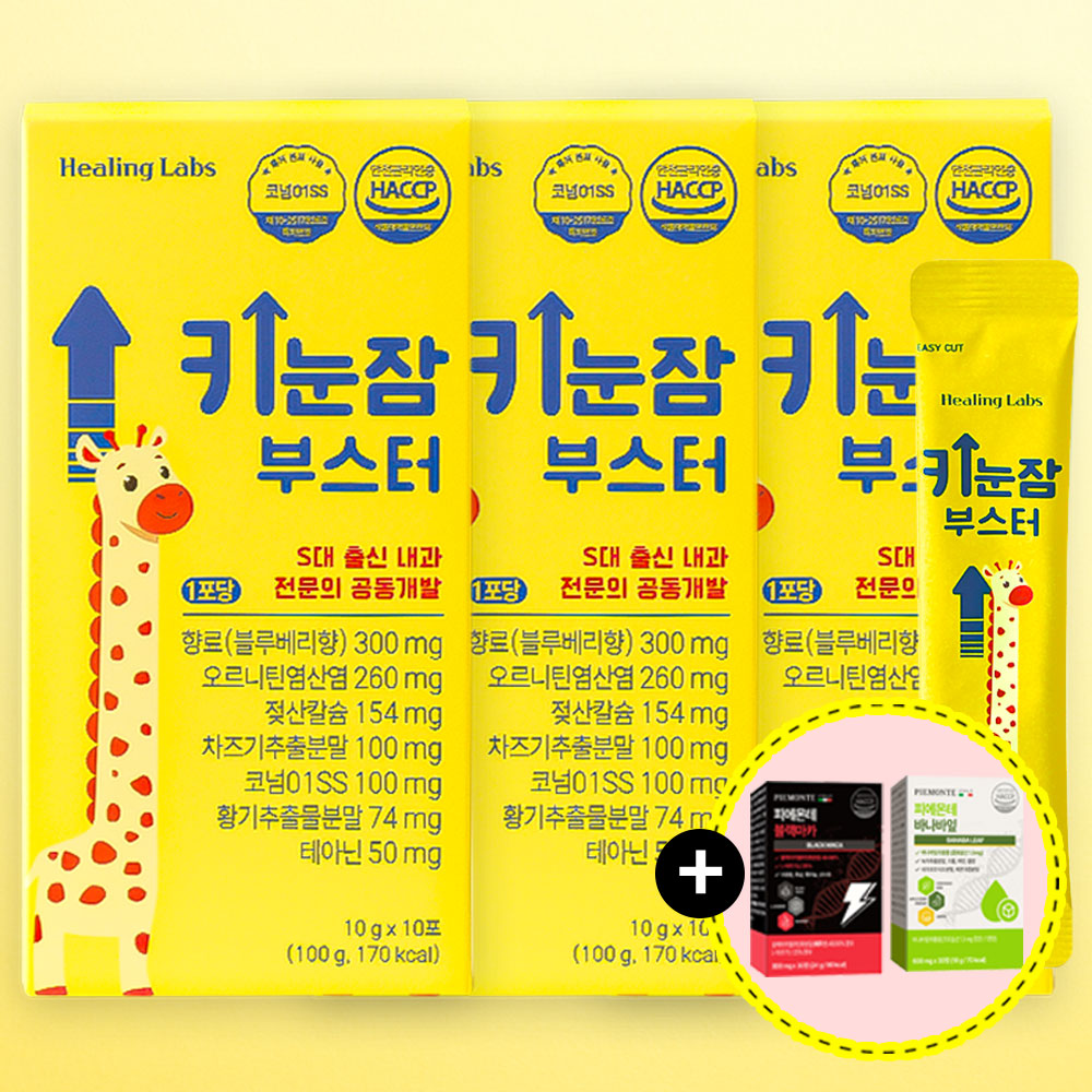 힐링랩스 성장젤리 키눈잠 부스터 10포 x3개 +피에몬테 영양제 랜덤드림 / 올인원 아이영양제