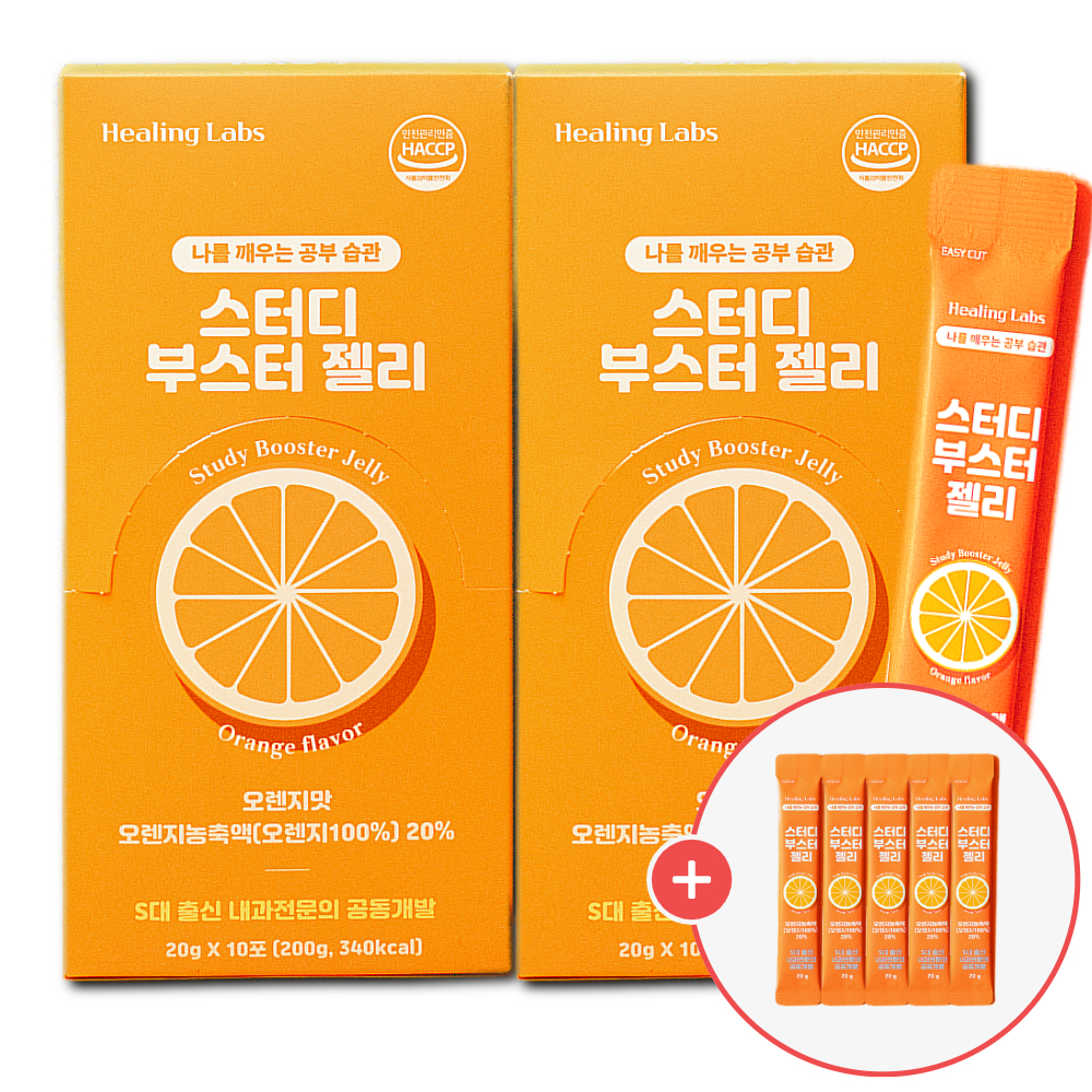 힐링랩스 피로회복 스터디부스터젤리 10포x2개 +스터디부스터 5포 드림 / 아르기닌 비타민젤리